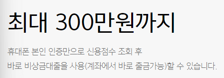 비상금대출 : 연 4.885% ~ 15.000%(2024.06.24. 기준)